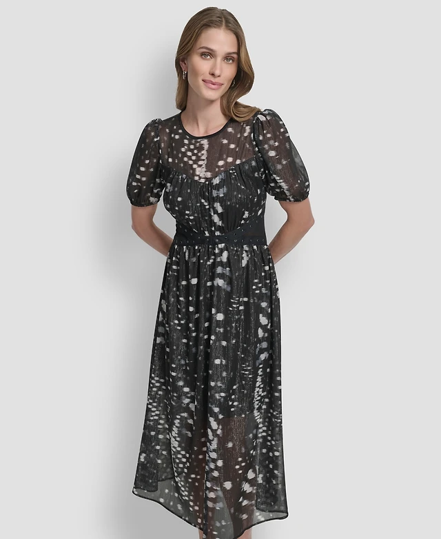 Avec Les Filles Women's Puff Sleeve Godet Midi Dress