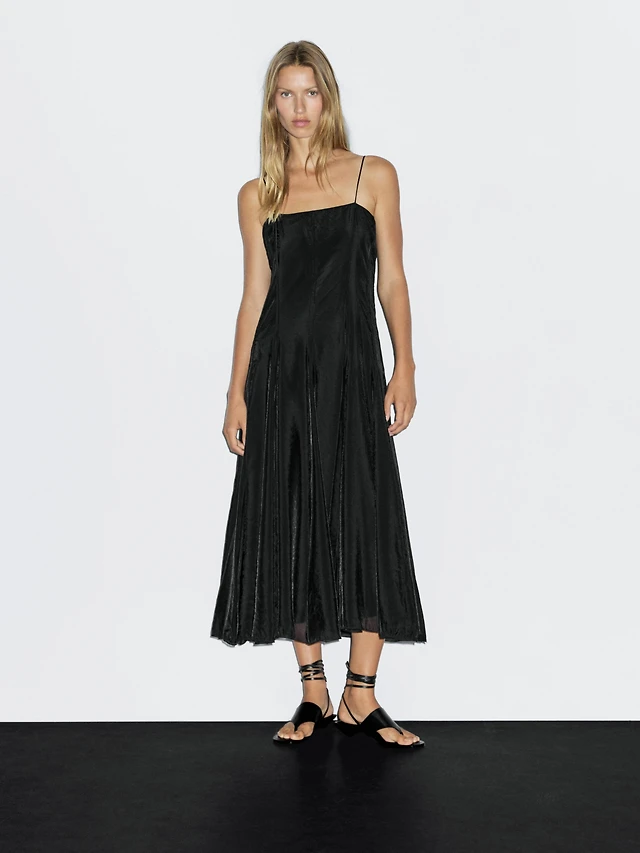 Milla Women's Corset Dress On Straps With A Glossy Midi Skirt