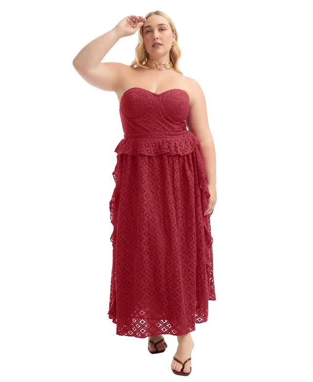 EMBROIDERED EYELET CORSET MIDI DRESS