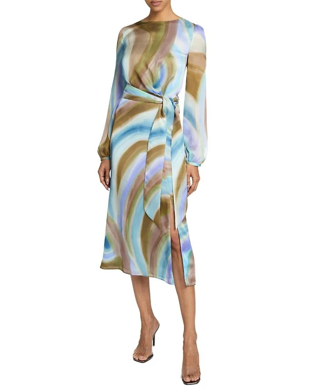 London Times Petite Long-Sleeve Sarong Skirt Midi Dress