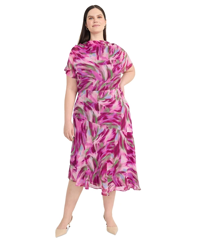 Sandra Darren Plus Printed Flutter-Sleeve Midi Dress