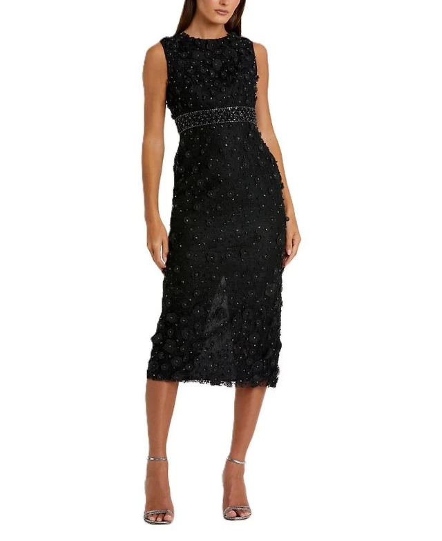 Connected Petite Mesh Tie-Waist 3/4-Sleeve Midi Dress