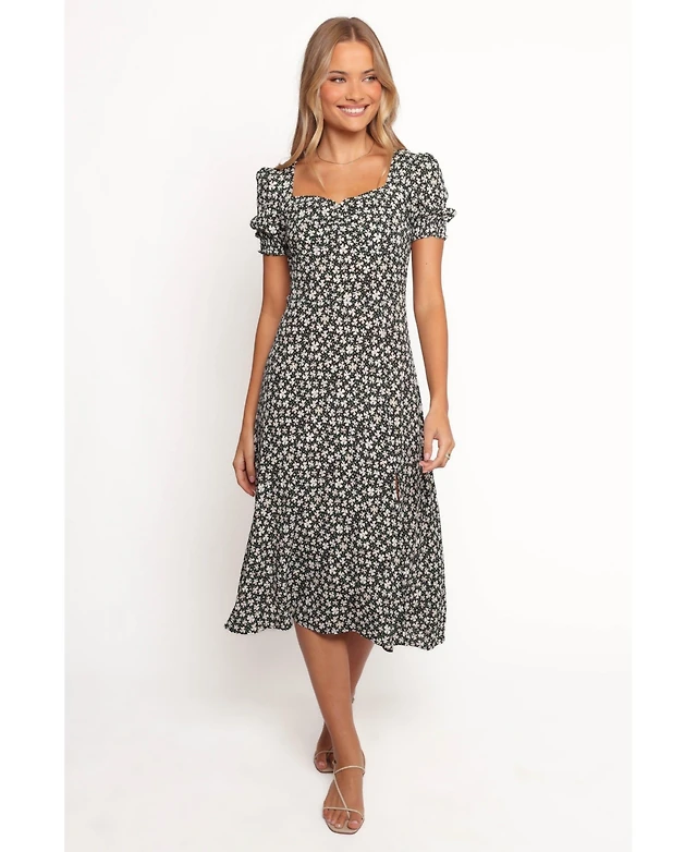 Standards & Practices Plus Size Puffed Sleeves Scoop Neck Midi Dress