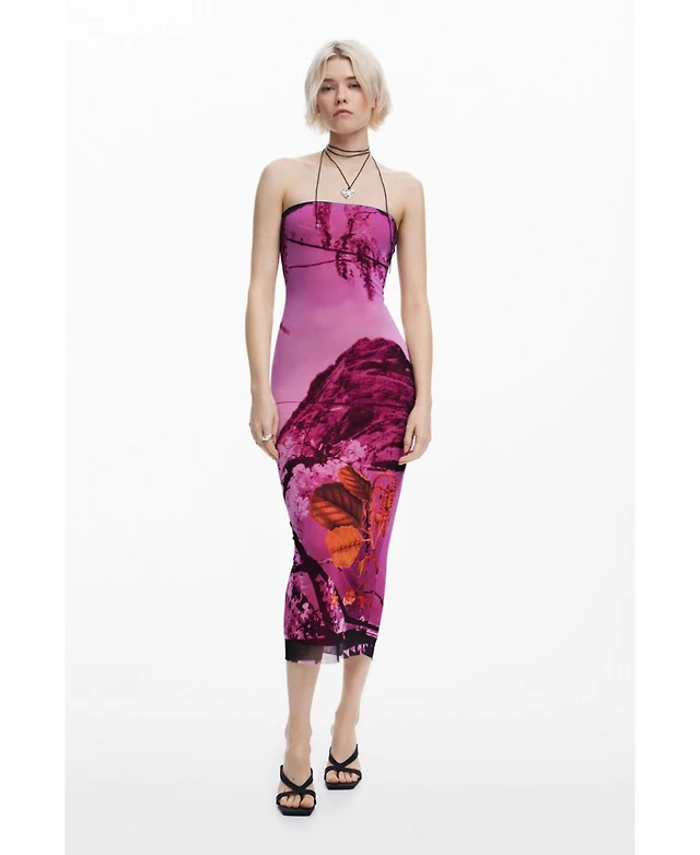 Dkny Women's Sleeveless Mix Media Printed Maxi Dress