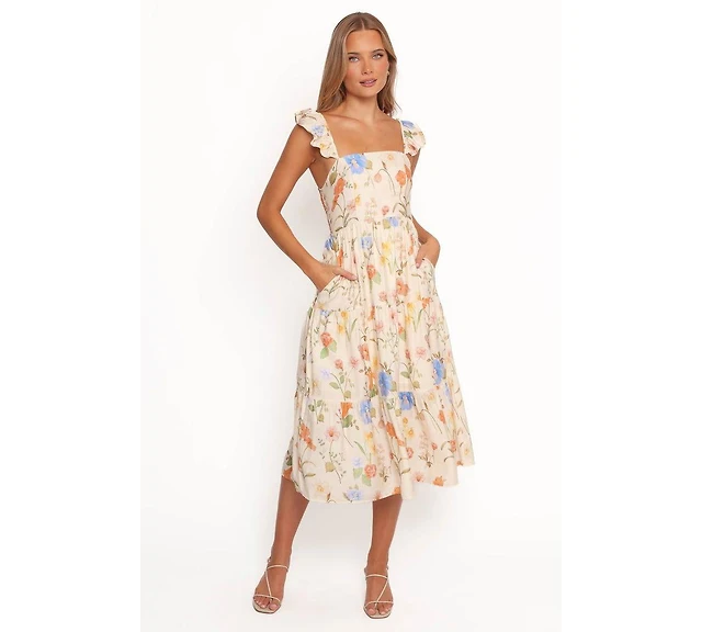Pinkblush Cream Multi Ditsy Floral Smocked Maternity Midi Dress