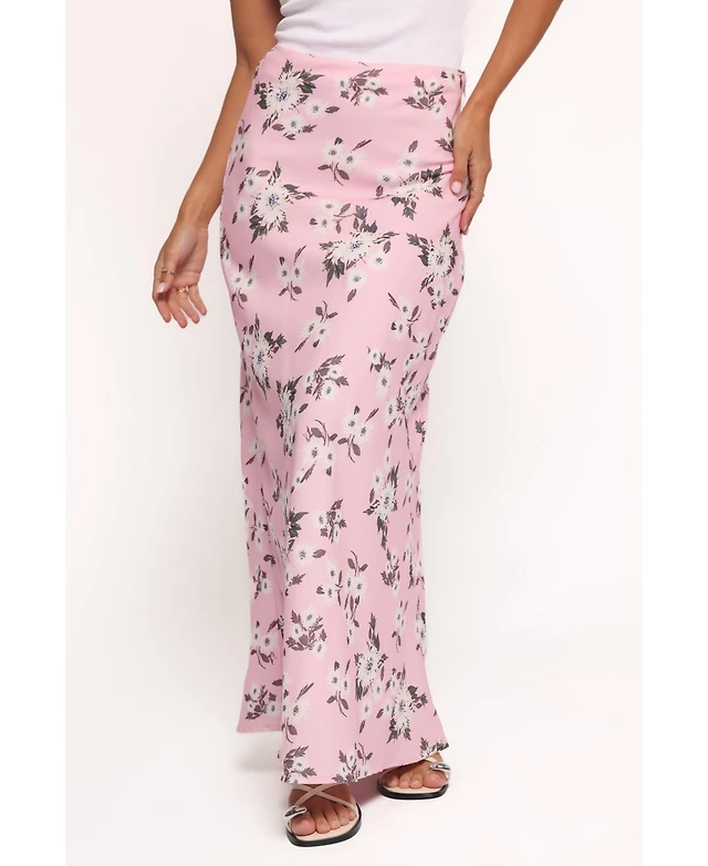 Satin Floral Print Maxi Skirt