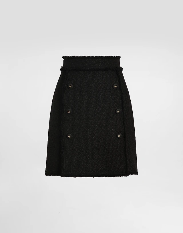 Short raschel tweed skirt with decorative DG logo buttons