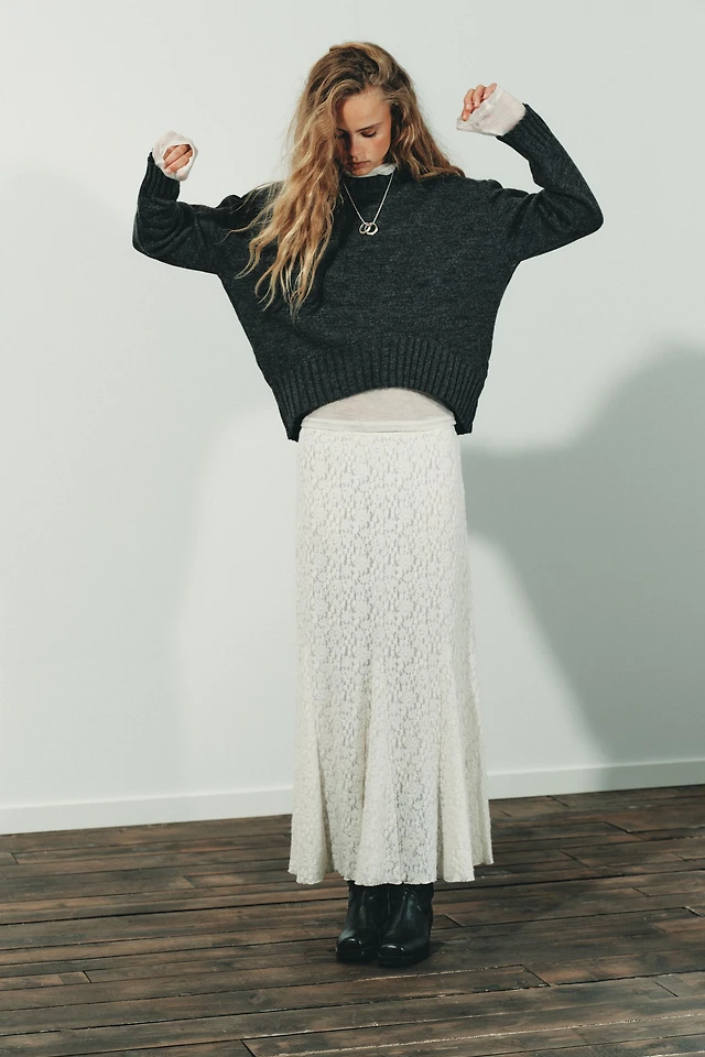 Charmeuse calf-length pencil skirt with fur print and feathered detailing