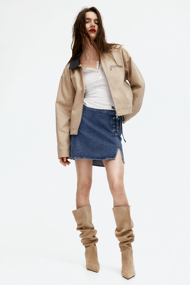 Lacing-Detail Denim Mini Skirt