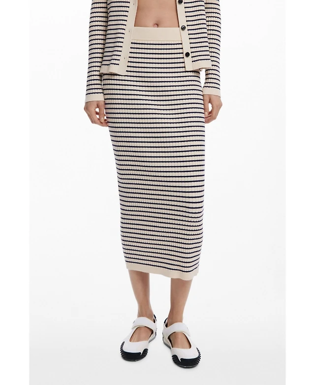 Nocturne Women's Striped Linen Blend Midi Skirt with Metal Accessories