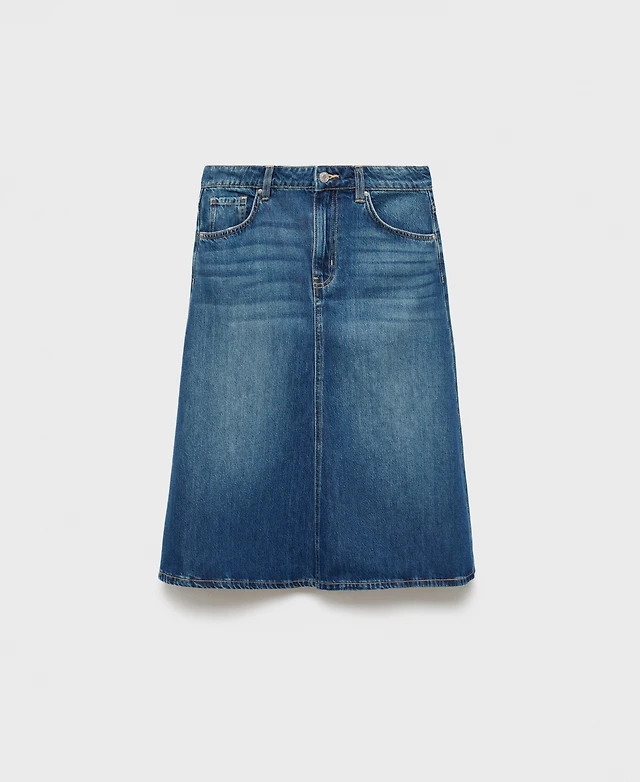 Mango Women's Pleat Detail Cotton Midi Skirt