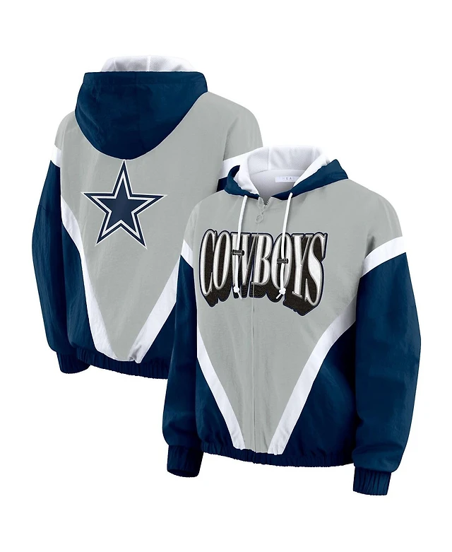 Wear by Erin Andrews Women's Navy/Gray Dallas Cowboys Plus Retro Crinkle Full-Zip Windbreaker Jacket