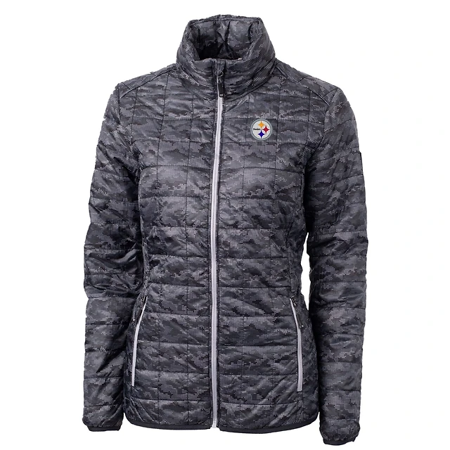 Women's Cutter & Buck Black Pittsburgh Steelers Rainier Printed Full-Zip Puffer Jacket