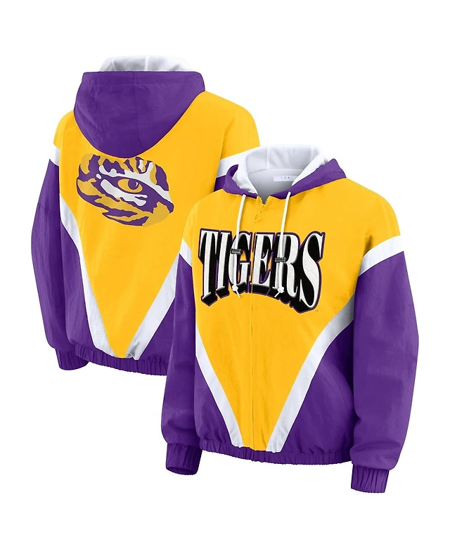 Wear by Erin Andrews Women's Gold/Purple Lsu Tigers Color Block Full-Zip Hoodie Windbreaker Jacket