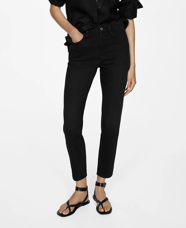 Flying Monkey Women's High Rise Cropped Step Hem Slim Straight Jeans