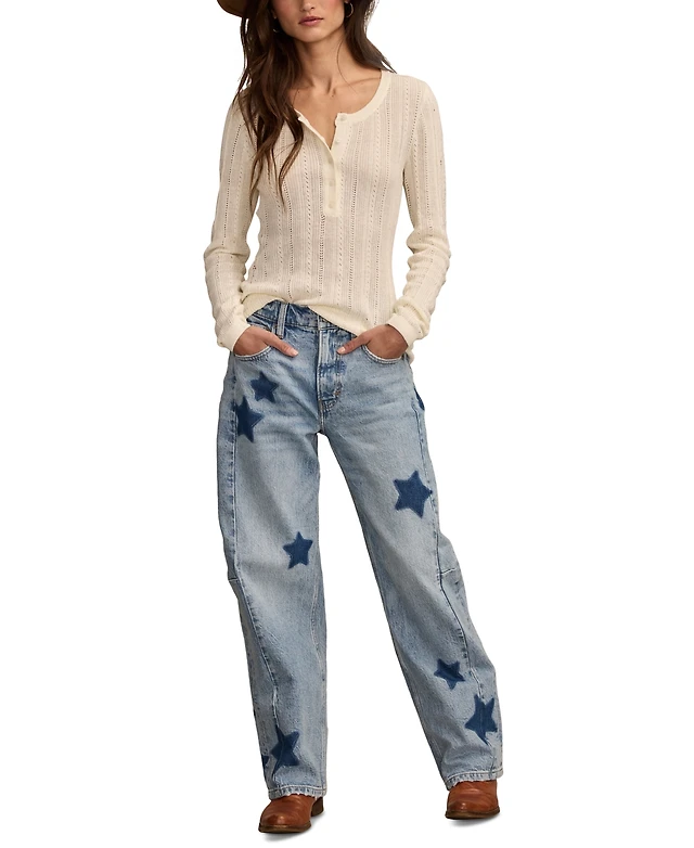 Lands' End Women's Denim High Rise Patch Pocket Extra Wide Leg Crop Jeans