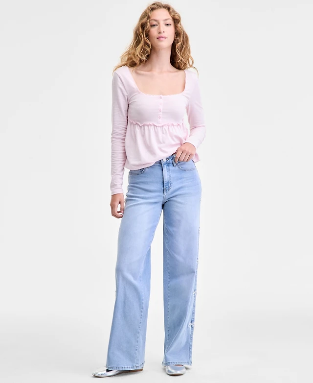 And Now This Trendy Plus High-Rise Wide-Leg Cutwork Jeans, Exclusively at Macy's