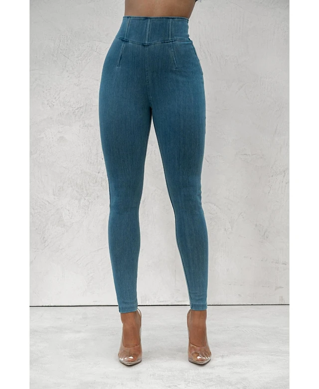 High Waisted Dark Wash Waist Detail Skyscraper Jeans