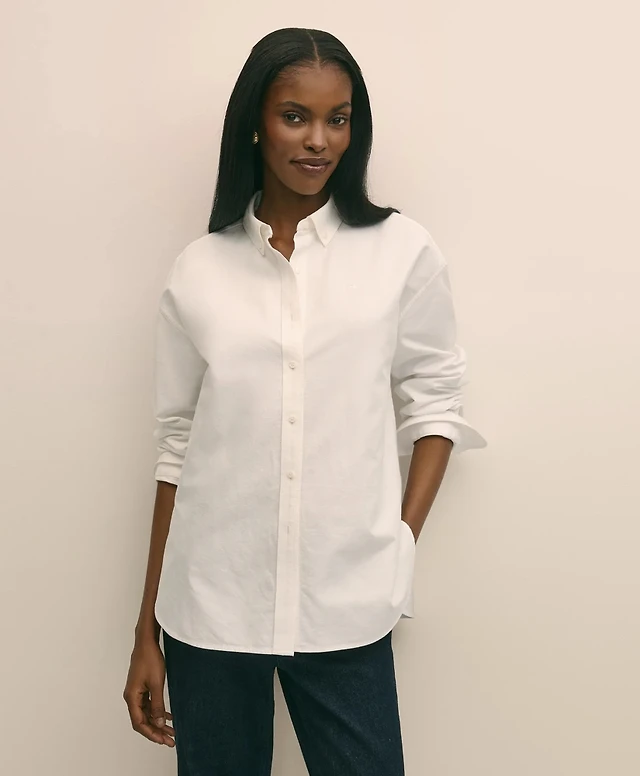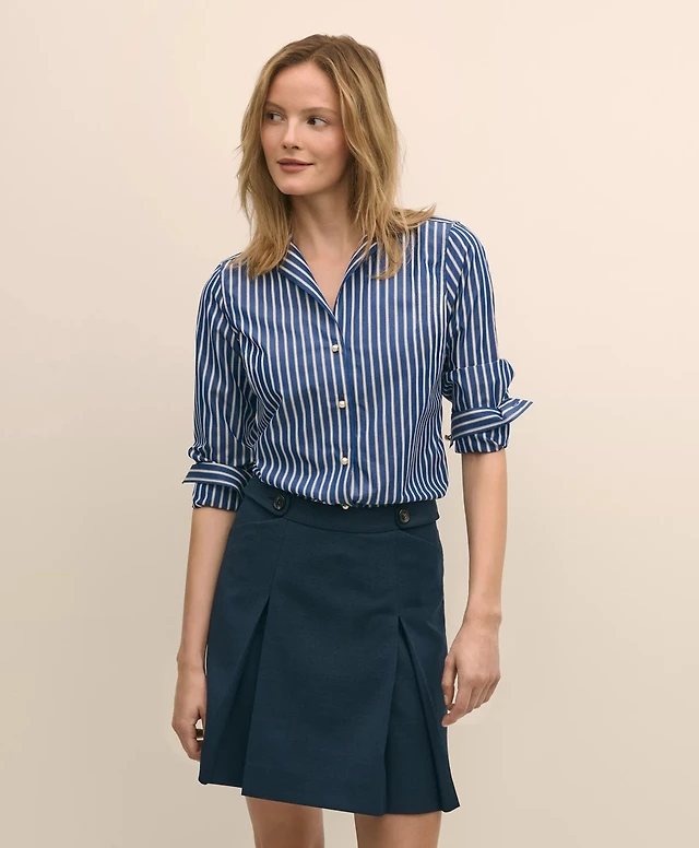 Fitted Supima<sup>®</sup> Cotton Striped Dress Shirt with Faux Pearl Button Detail