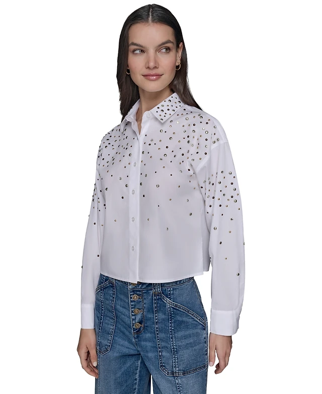 Kenneth Cole Women's Stripe Button-Front Crop Shirt