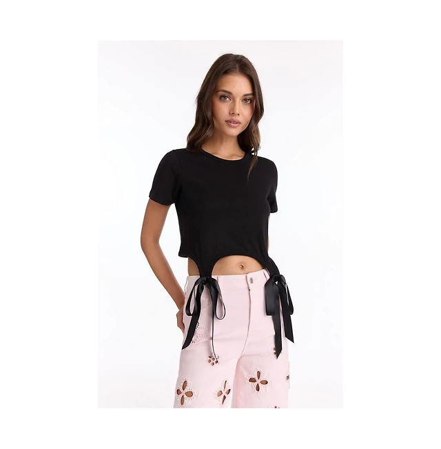 The Noli Shop Women's Diana Satin Bow Shirt - White
