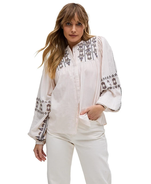 Yumi Women's Metallic Relaxed Balloon Sleeve Shirt