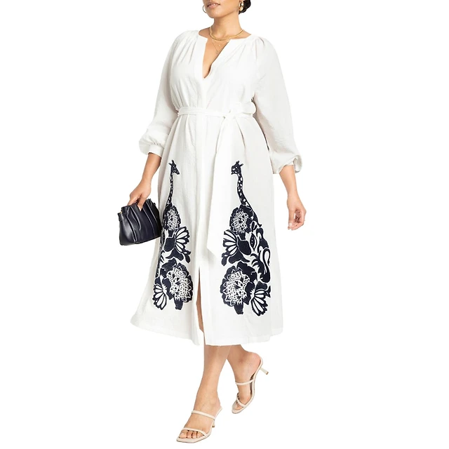 Jessica Howard Plus 3/4-Sleeve V-Neck Dress