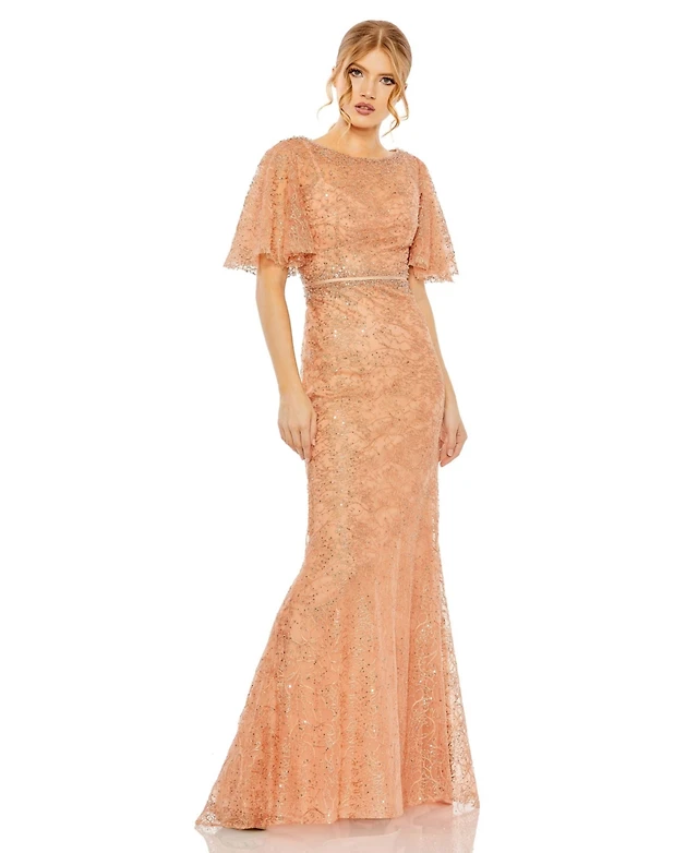 Women's Embellished Neck Butterfly Sleeve Trumpet Gown
