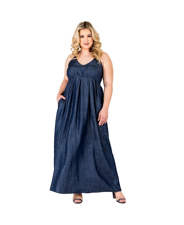 Eloquii Women's Plus Tie Detail Denim Midi Dress