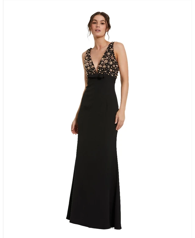 Lara Women's Long Sleeve, High Neck Beaded Gown - Outlet