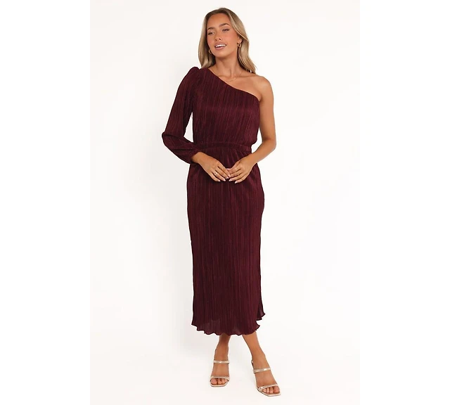 Petal and Pup Women's Pontee One Shoulder Pleated Midi Dress - Burgundy