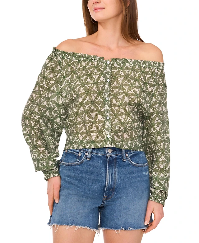Free People Women's Adore You Printed Puff-Sleeve Blouse