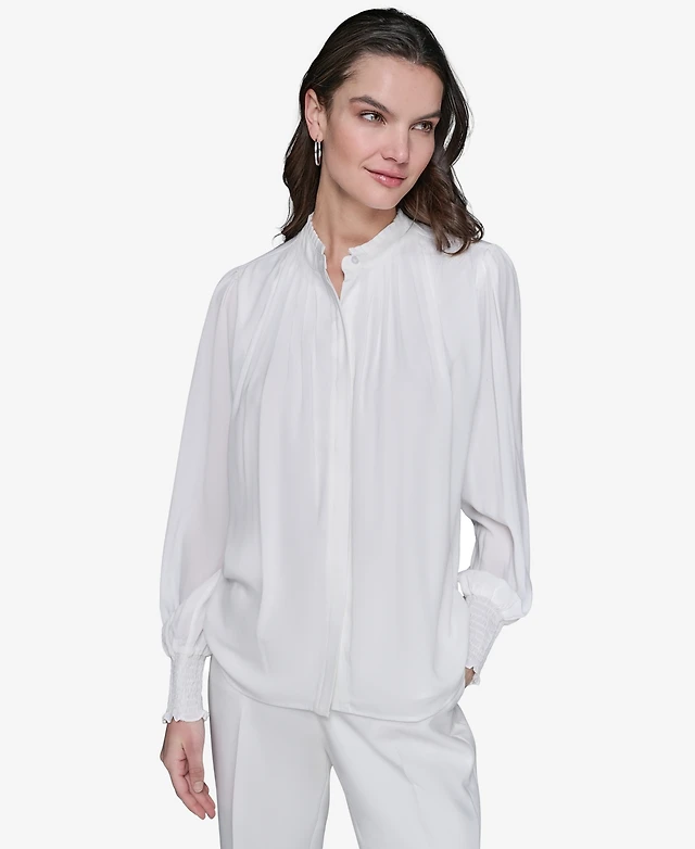 Dkny Women's Puff-Sleeve Pleated Blouse