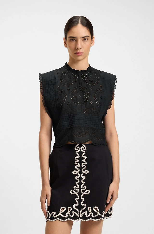 Regular-fit blouse cotton broderie with pleat details