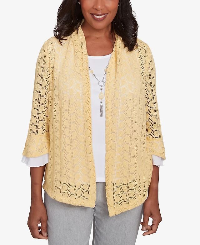 Alfred Dunner Women's Dress Code Two One Pointelle Knit Top with Necklace