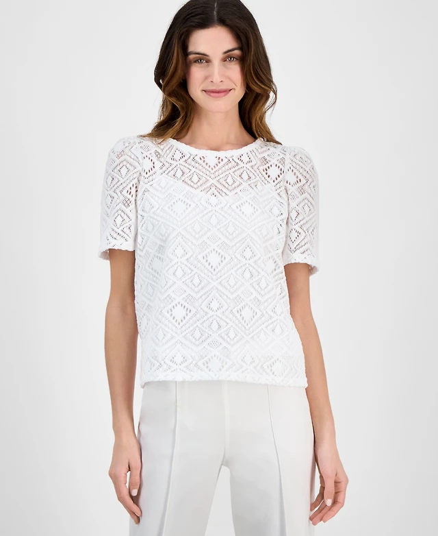 Alfred Dunner Petite Saratoga Springs Floral Lace Trim Soft Knit Top