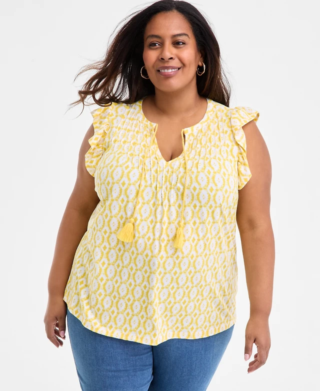 Poplin Striped Flutter Sleeve Button Up Gramercy Shirt