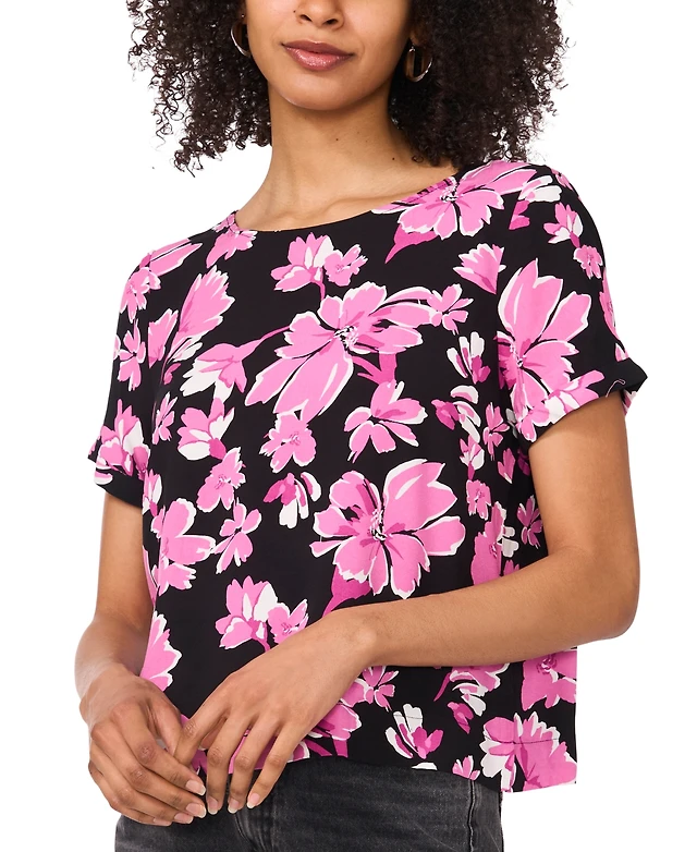 Vince Camuto Women's Rolled-Cuff Printed Blouse