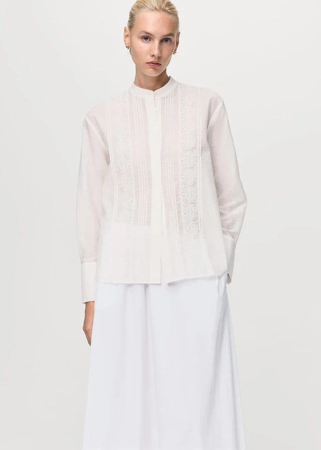 Mango Women's Openwork Details Embroidered Cotton Blouse