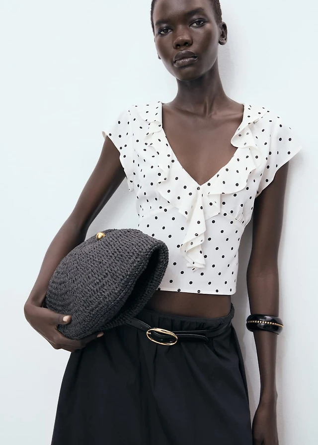 Mango Women's Asymmetric Sleeves High-Neck Blouse
