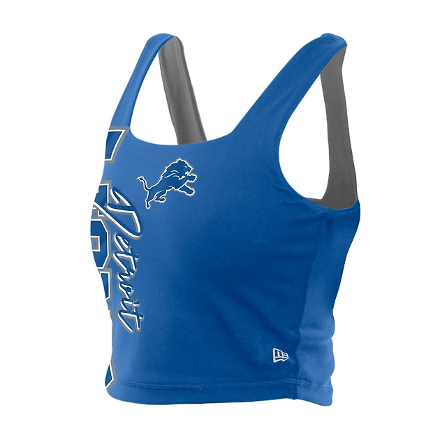 Women's New Era Blue/Gray Detroit Lions Reversible Cropped Sport Classics Tank Top