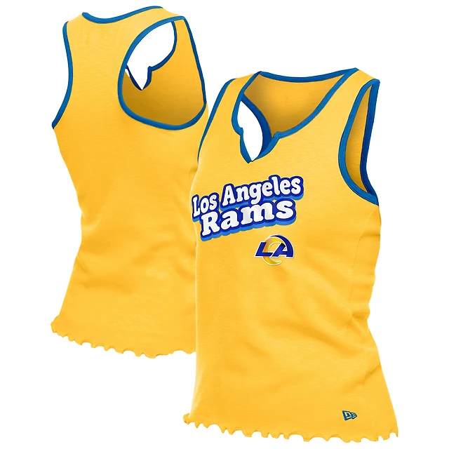 Women's New Era Gold Los Angeles Rams Lettuce Hem Notch Neck Tri-Blend Tank Top