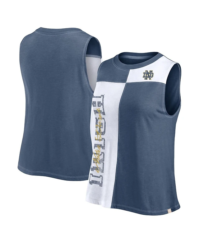 Fanatics Women's Navy/White Notre Dame Fighting Irish Colorblock High Neck Tank Top