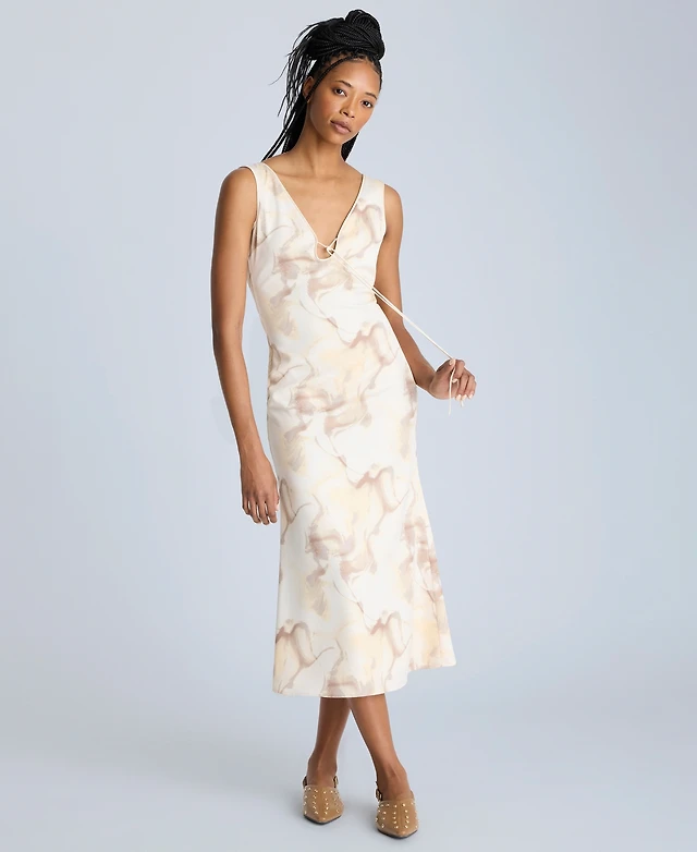 Bebe Women's Bow Front Bustier Knit Slip Midi Dress