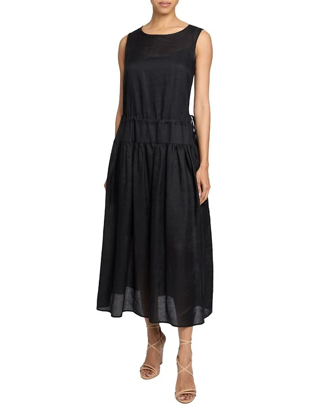 MISTY Sleeveless Midi Dress with Full Skirt and Detachable Slip, Side Pockets Lightweight Ramie