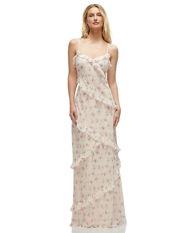Dessy Collection Women's Asymmetrical Ruffle Chiffon Bias Slip Maxi Dress
