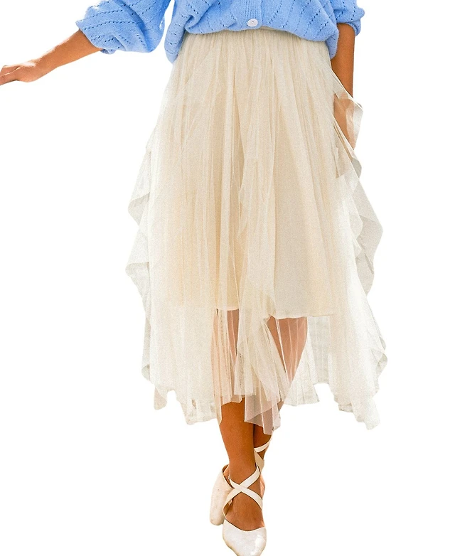CeCe Women's Pull-On Ruffled Tulle Midi Skirt