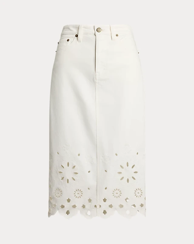 Eyelet Denim Midi Skirt