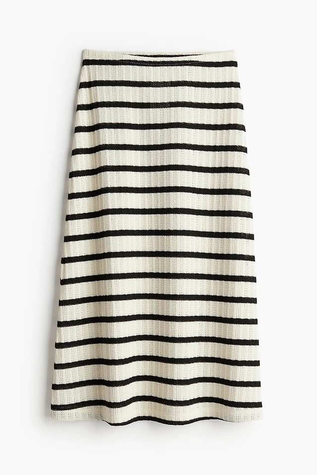 Sunburst Pleat Ribbed Knit Midi Skirt