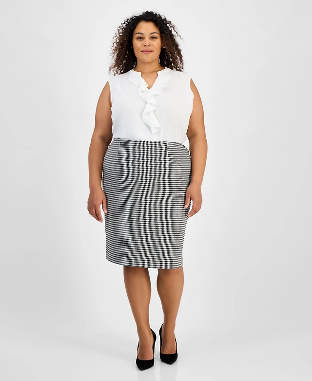 Tahari Asl Plus Tweed Back-Slit Pencil Skirt, Created for Macy's